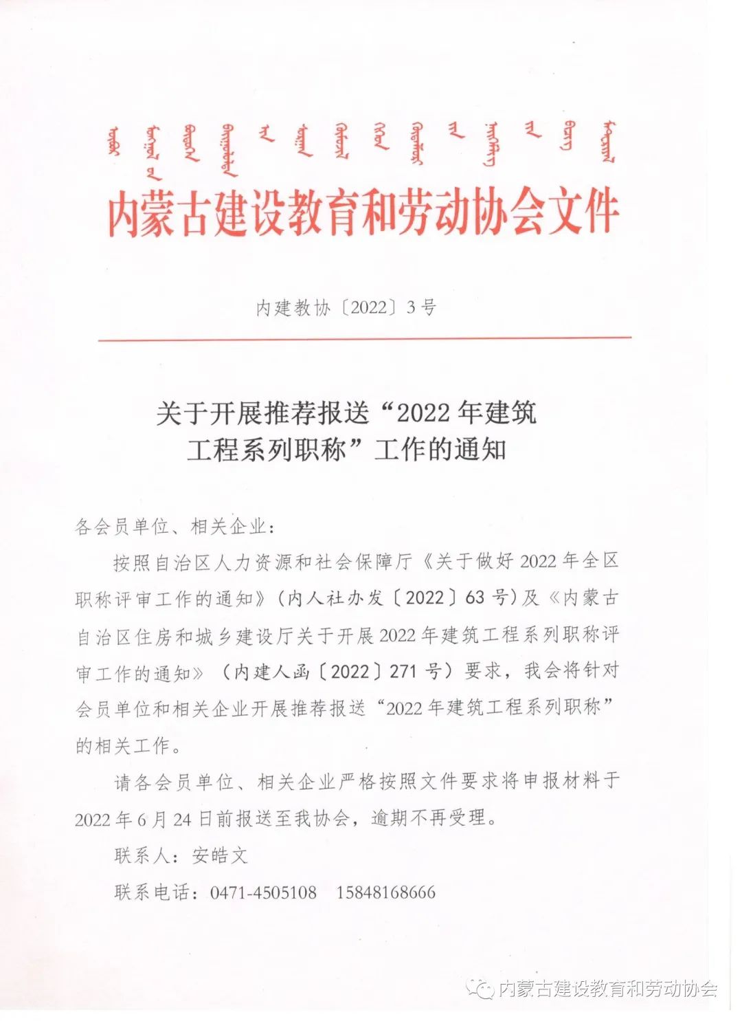 关于开展推荐报送“2022年建筑工程系列职称”工作的通知