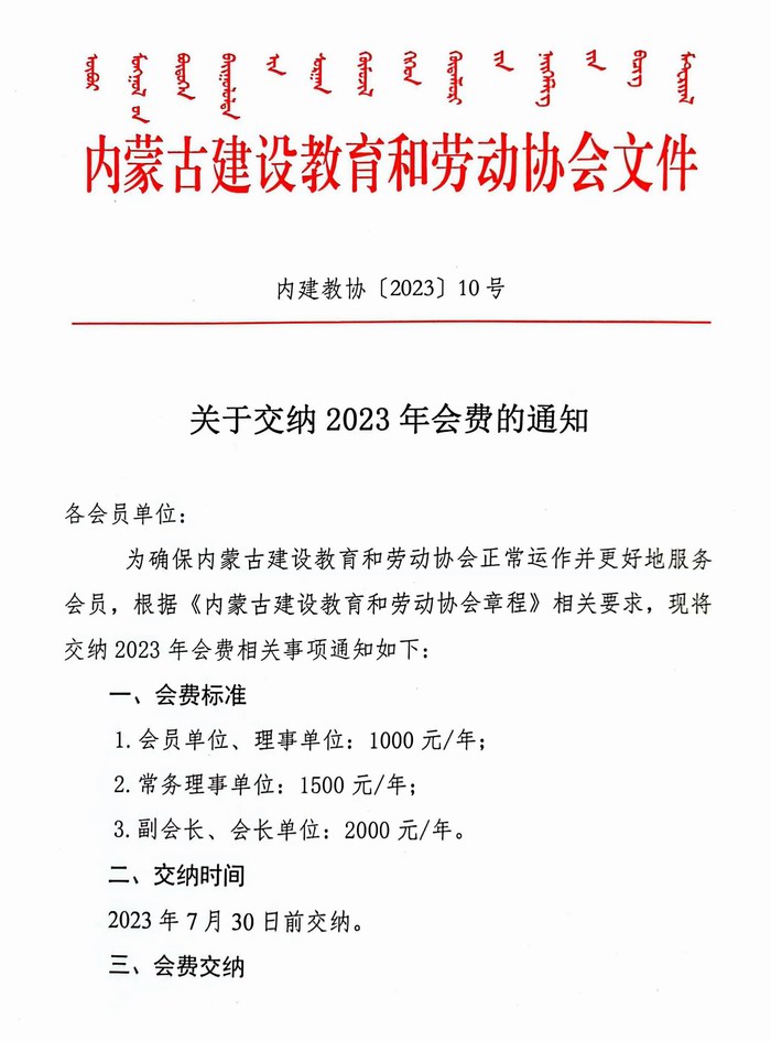 协会关于交纳2023年会费的通知