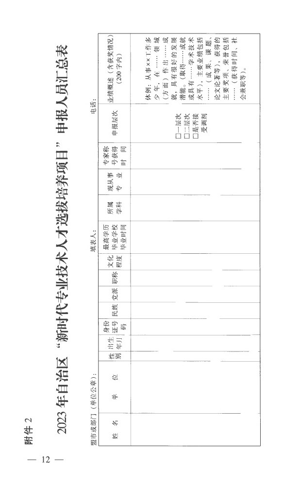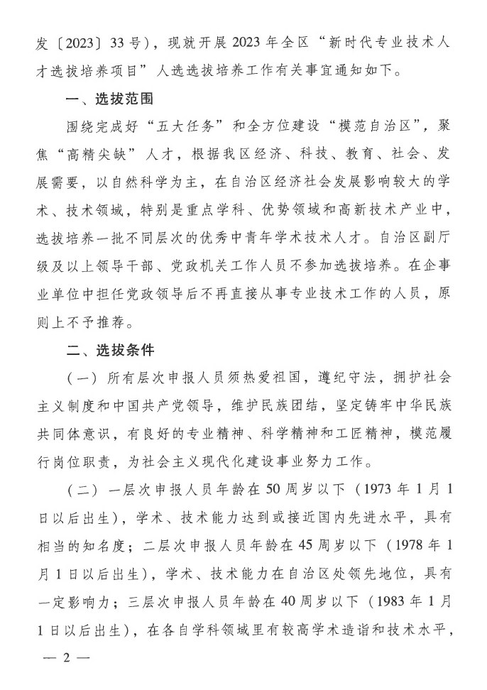 关于开展2023年全区“新时代专业技术人才选拔培养项目”人选选拔培养工作的通知