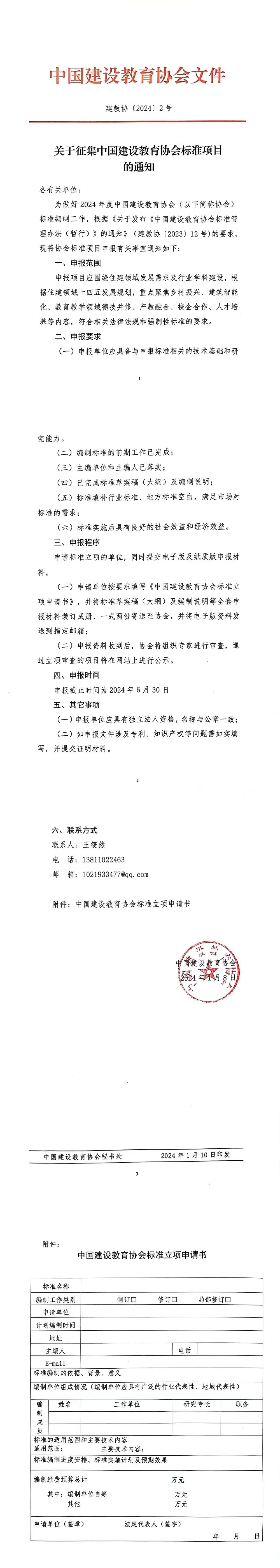 转发中国建设教育协会《关于征集中国建设教育协会标准项目的通知》