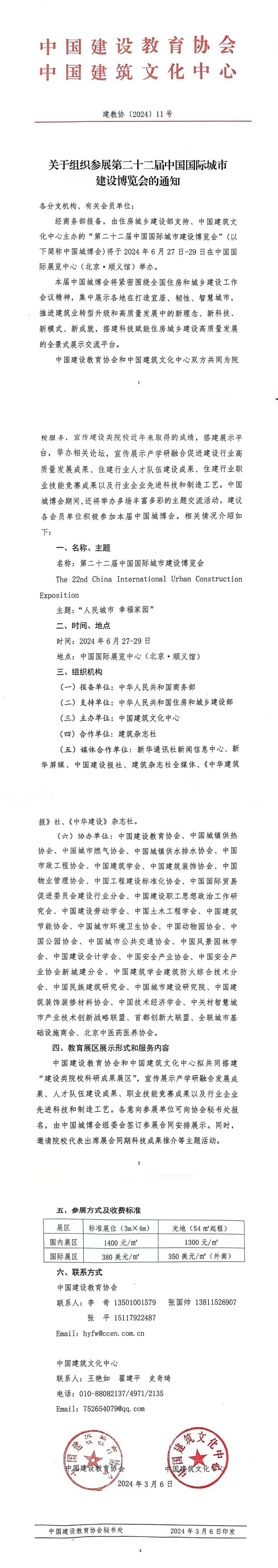 转发中国建设教育协会 中国建筑文化中心《关于组织参展第二十二届中国国际城市建设博览会的通知》