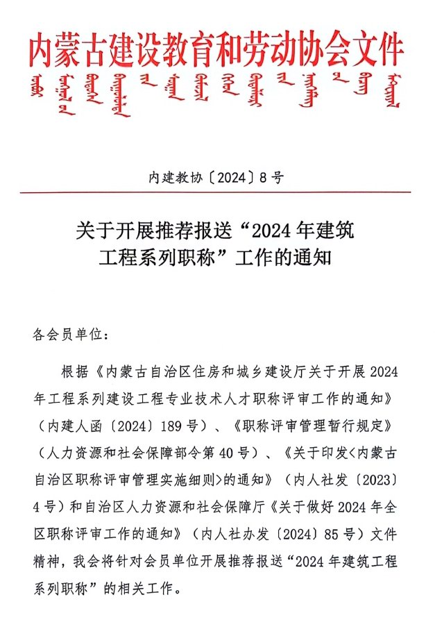 关于开展推荐报送“2024年建筑工程系列职称”工作的通知