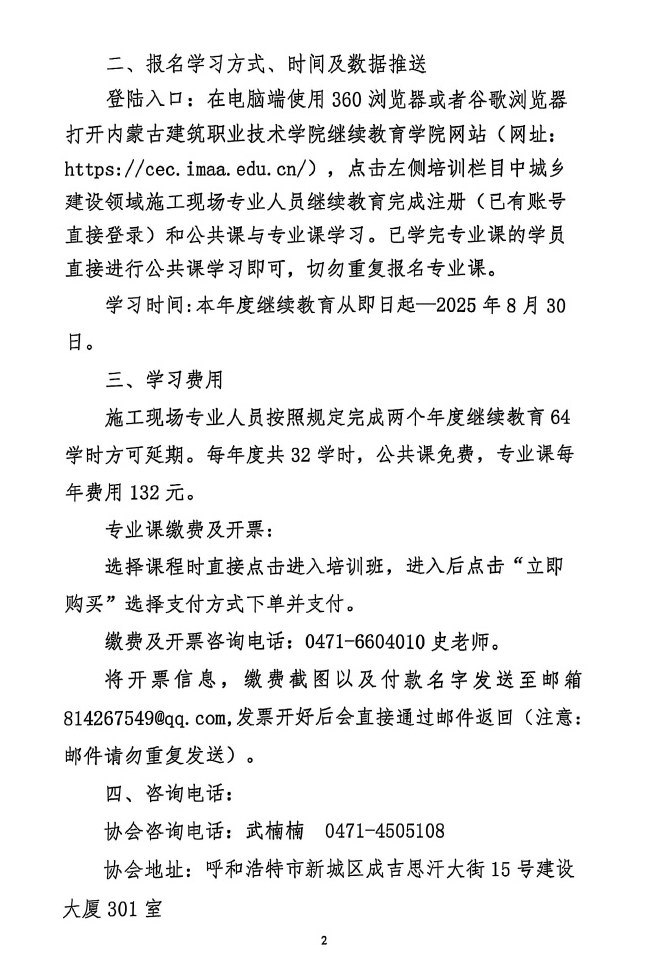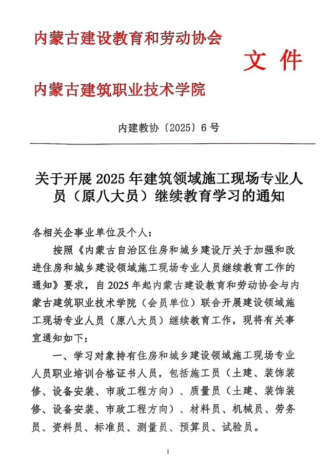 关于开展2025年建筑领域施工现场专业人员(原八大员)继续教育学习的通知