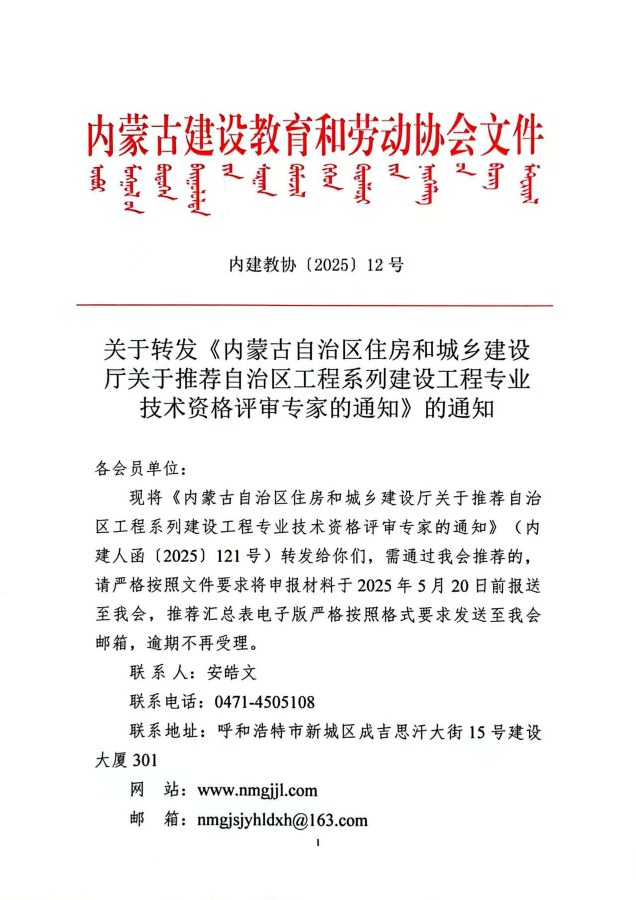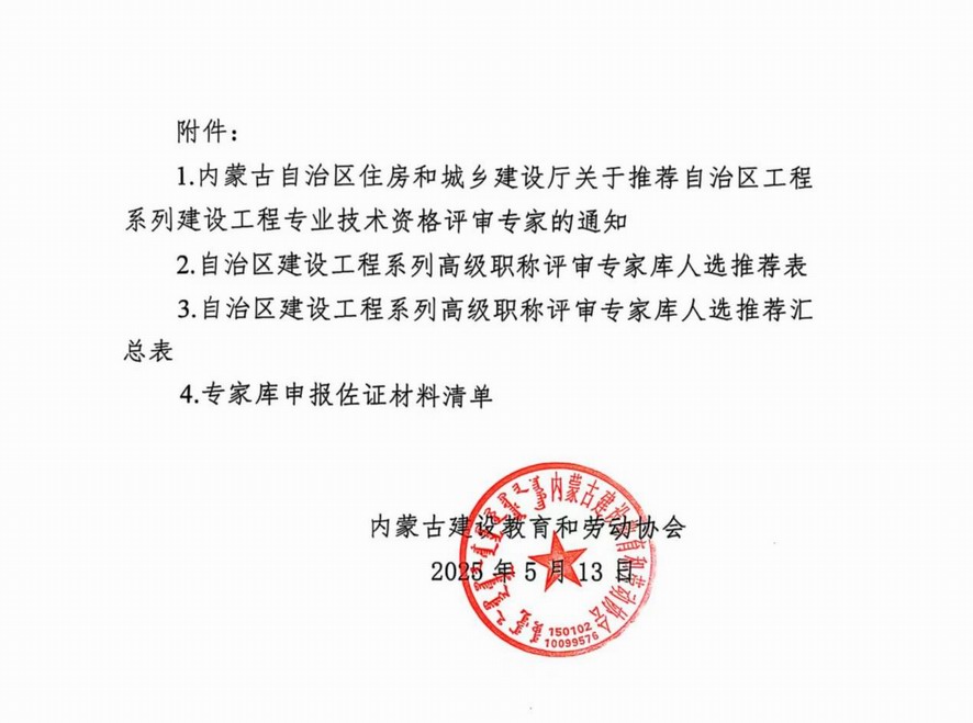 附件: 1.内蒙古自治区住建厅关于推荐自治区工程系列建设工程专业技术资格评审专家的通知